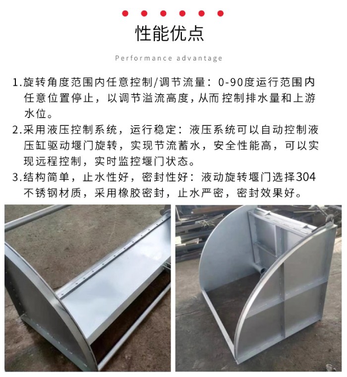 液動旋轉(zhuǎn)堰門是一種結構緊湊、耐腐蝕、密封性能好的流體排放控制設備,堰門結構類似閘門,但其向上為關,向下為開。堰門采用明桿升降式、橡膠密封止水結構形式,啟閉機與門體采用螺桿及連接軸聯(lián)接。根據(jù)液位計提供的堰門前后水位,控制系統(tǒng)通過液壓缸實現(xiàn)堰門的開啟和關閉。通過液位計和角度傳感器,控制堰門的攔蓄高度,可實現(xiàn)截流蓄水、控制排水流量和調(diào)節(jié)上游水位等功能。它具有易于安裝、操作和維護的特點,能夠?qū)崿F(xiàn)精確的液位控制和流量調(diào)節(jié)。